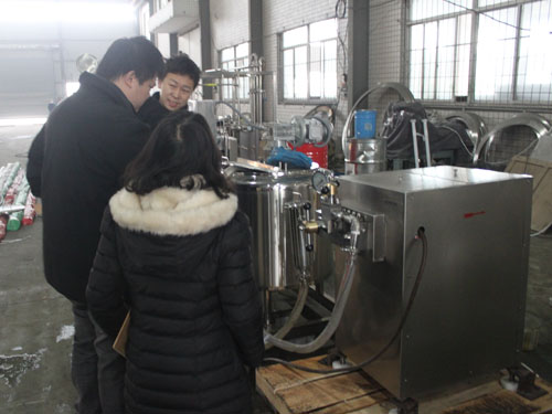 澳大利亞客戶因均質(zhì)牛奶需要,于2014年在我公司購(gòu)買一臺(tái)高壓均質(zhì)機(jī)。由于不太熟悉均質(zhì)機(jī)的操作,2015年1月28日, 澳大利亞客戶來(lái)我工廠現(xiàn)場(chǎng)學(xué)習(xí),業(yè)務(wù)員與技術(shù)工程師熱情的對(duì)其進(jìn)行了設(shè)備的操作指導(dǎo)。