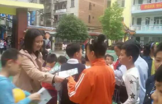 項(xiàng)目負(fù)責(zé)人解冰為學(xué)生發(fā)放兒童食品安全手冊