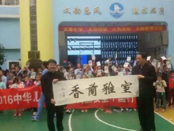 《新魏書法》、《漢字發(fā)明書寫經(jīng)緯十字定位法》的創(chuàng)始人祁繼慶老師為兒童食品安全題寫的“厚德載物”“室雅蘭新”“上善若水”三副新魏體書法作品由兒童食品安全負(fù)責(zé)人解冰捐贈給了文惠小學(xué)和柳州金沙投資管理有限公司。