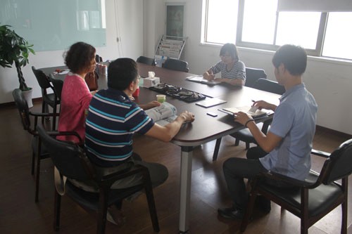 杭州下沙客戶因公司發(fā)展需要訂制數(shù)臺生物發(fā)酵罐,與銷售人員和工程師進行具體需求的洽談。